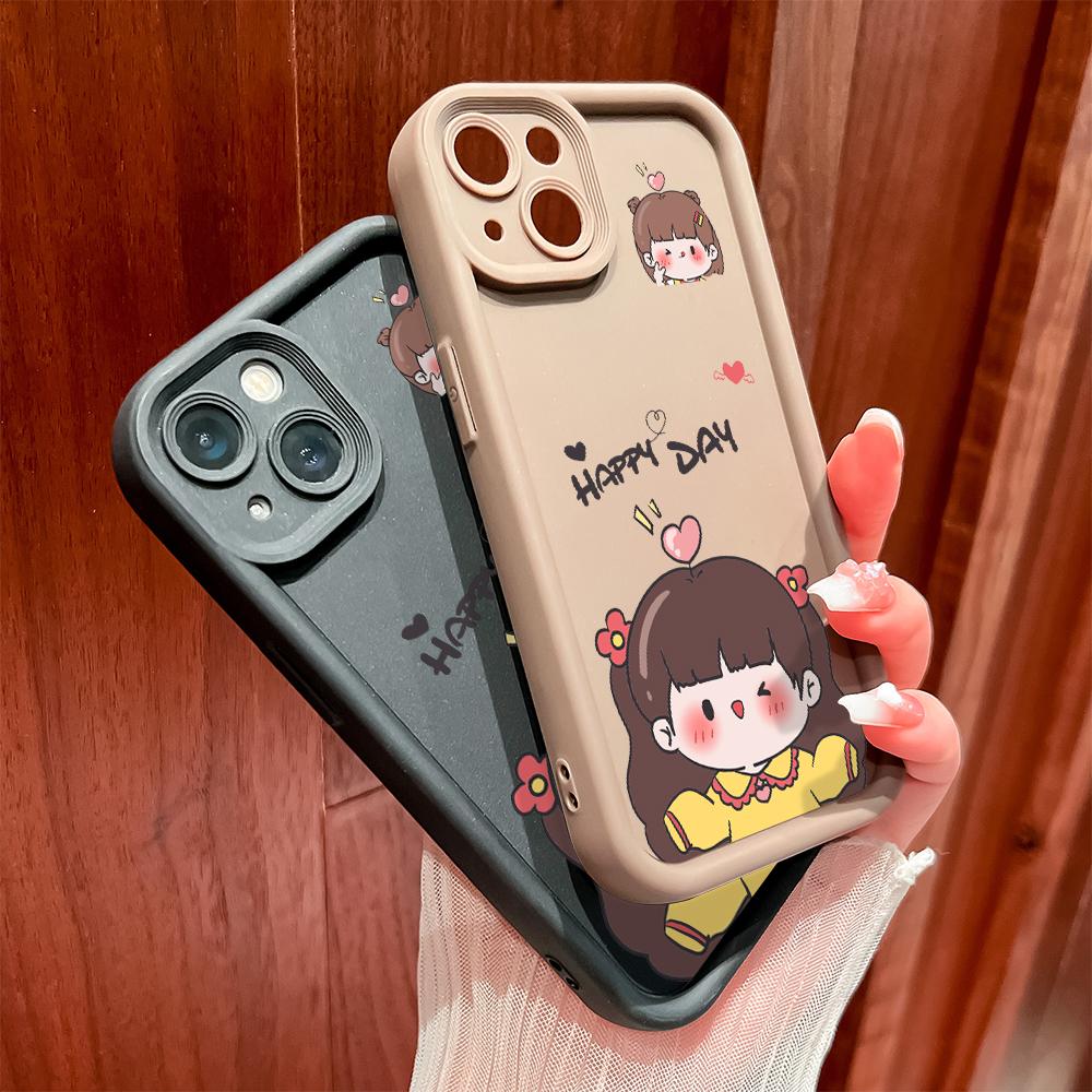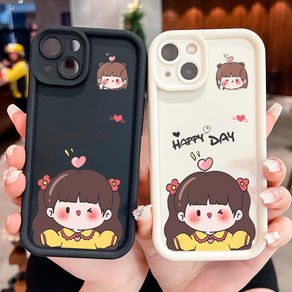 Для Realme 11 11x 12x 12 Pro C21 C30 C33 C35 C65 OPPO A18 A38 A60 A96 Reno 10 11 12 Pro Lovely Girl Full Lens Protective Soft Silicone Phone Case