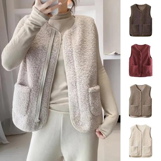 Женский жилет осень-весна с круглым вырезом, толстый флис, карманы, однотонный, без рукавов, застежка-молния, ретро, теплый, для офиса, улицы, дома, отпуска, многослойный жилет