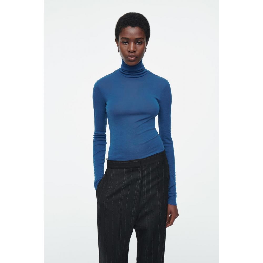 COS Япония Приталенный Прозрачный Топ-водолазка из Мериносовой Шерсти