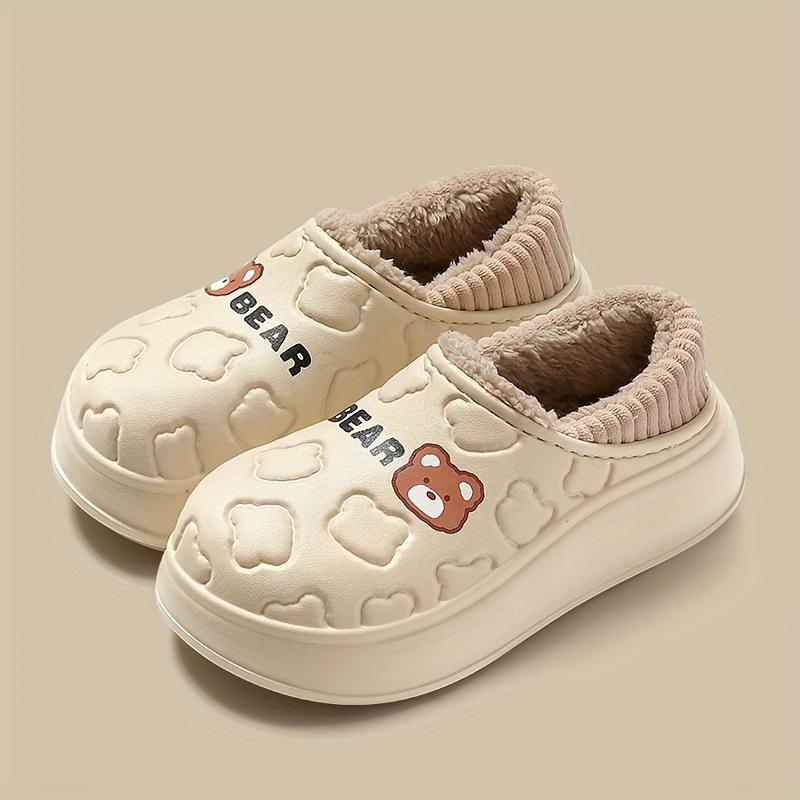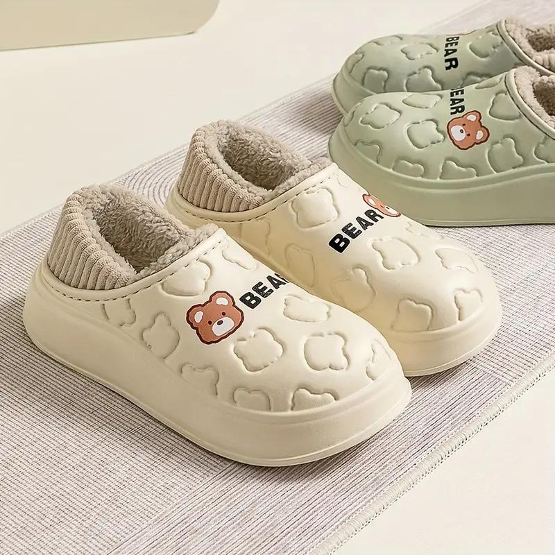 Тапочки с плюшевой подкладкой в виде мультяшного медведя для женщин, водонепроницаемые тапочки, модная домашняя обувь с мягкой подошвой из ЭВА