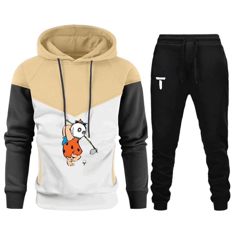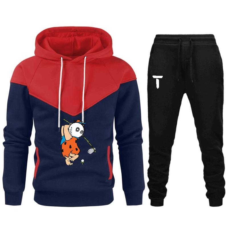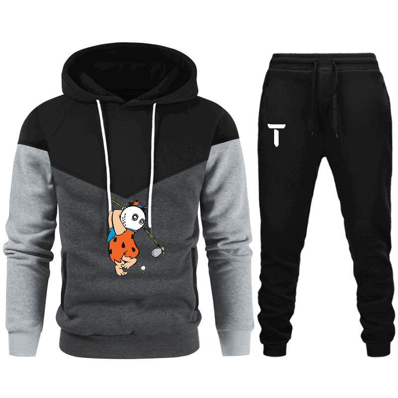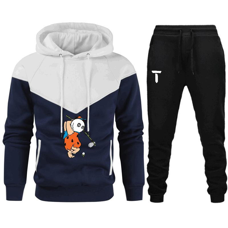 2024 Мужской комплект с капюшоном в стиле пэчворк, теплый и роскошный комплект из двух предметов, высококачественный принтованный свитер, спортивная одежда