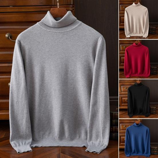 Осень-зима мужской свитер с высоким воротником, толстый эластичный трикотаж с длинными рукавами, теплый однотонный трикотаж, свободный повседневный деловой свитер — купить товар онлайн с бесплатной доставкой до всему миру!