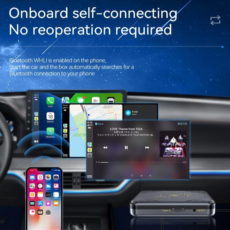 Блок CarPlay преобразует проводной CarPlay в беспроводной CarPlay для подключения вашего телефона к вашему автомобилю.. Он поддерживает беспроводную музыку, навигацию и другие функции, подключи и работай и поддерживает работу оригинального автомобиля.. Такое соединение дает водителям больше удовольствия от вождения и снижает частоту использования сотового телефона.. Он предназначен для обеспечения пользователей более безопасным вождением.
