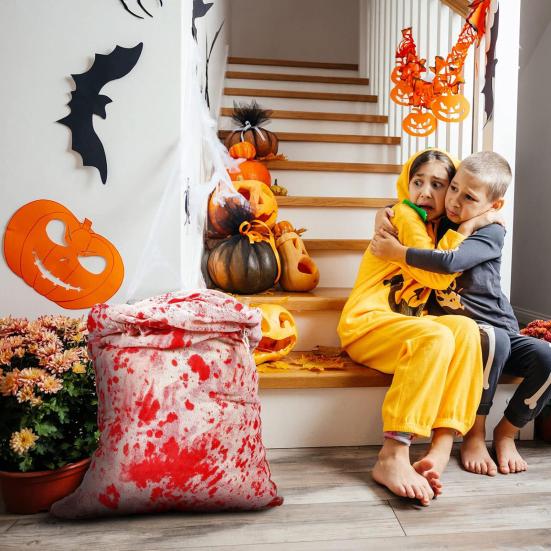 Жуткий аксессуар на Хэллоуин: Украсьте сцену из фильма «Мясник» или любую вечеринку в стиле Хэллоуина этим окровавленным мешком, перевязанным веревкой, создающим жуткую атмосферу.