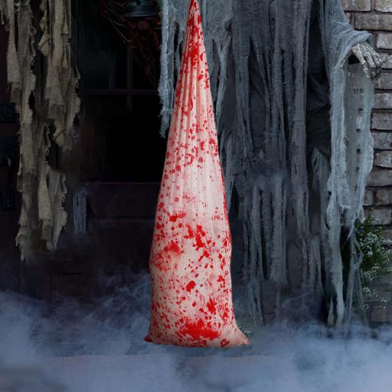 Украсьте свой интерьер на Хэллоуин с помощью этого мешочка из кровяной марли! Реалистичные пятна крови и жуткий дизайн делают его идеальным для вечеринок на Хэллоуин.. Его можно легко повесить в любом месте, чтобы создать жуткую атмосферу: на деревьях, окнах, потолках, верандах или дверных проемах..