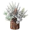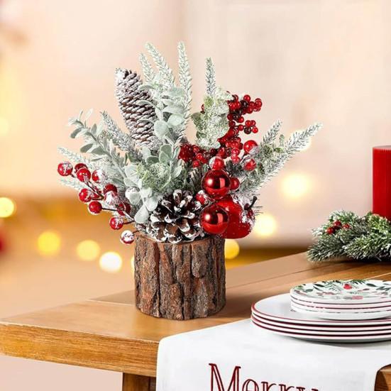 Настольная рождественская елка: Эти миниатюрные рождественские елки с реалистичными сосновыми иголками, ягодами, шишками и деревянной основой отличаются детальной отделкой и идеально подходят для декора как внутри, так и снаружи помещений.