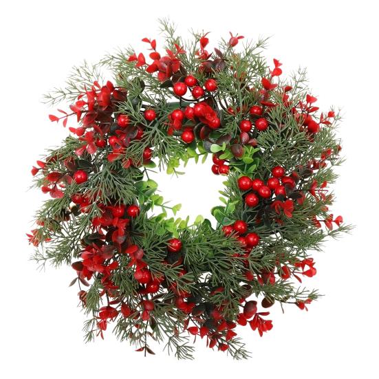 Рождественский венок из искусственных ягод, сосны, рождественская гирлянда для дома и улицы, украшение для входной двери, камина, спальни, балкона, столовой, вечеринки