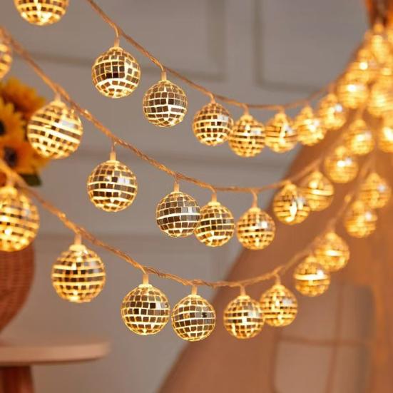 Добавьте немного очарования вашим вечеринкам с нашими диско-светильниками Mirror Ball! Эти милые светящиеся шарики идеально подойдут для создания праздничной атмосферы на вечеринках, свадьбах, праздниках или романтической сервировке стола.. Эти украшения работают от небольшой батарейки и предлагают два режима мигания и постоянного света, что делает их универсальными для любого случая.. Каждая гирлянда включает в себя 20 светодиодных лампочек, что делает их незаменимыми на рождественских вечеринках..