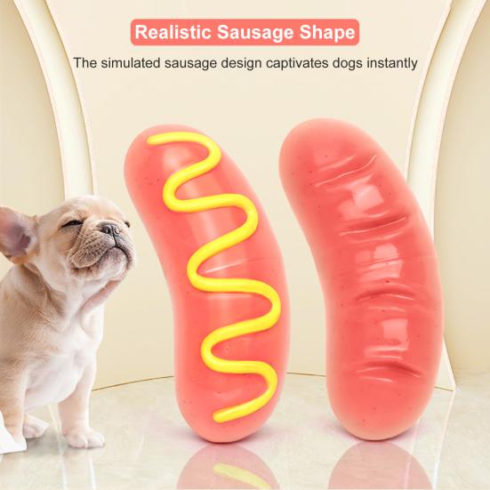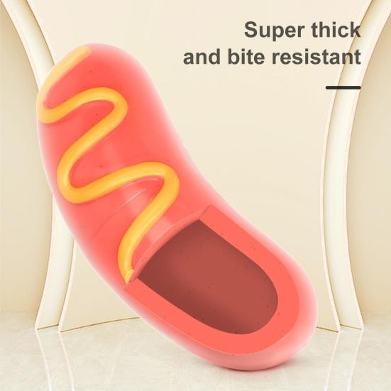 Реалистичная форма сосиски: Дизайн, имитирующий сосиску, мгновенно привлекает внимание собак, имитируя внешний вид и ощущение еды, что повышает интерес к игре и смягчает жевательное поведение, возникающее из-за скуки или беспокойства.