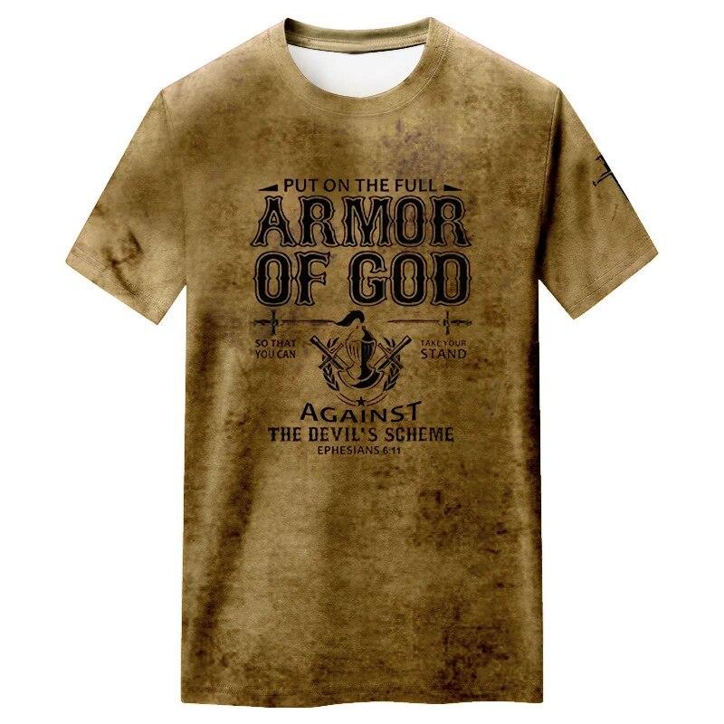 Мужская повседневная футболка с коротким рукавом и принтом Armor Of God 3D, верблюжья, винтажная, для дома, спорта, фитнеса, быстросохнущая, уличная, 2 предмета