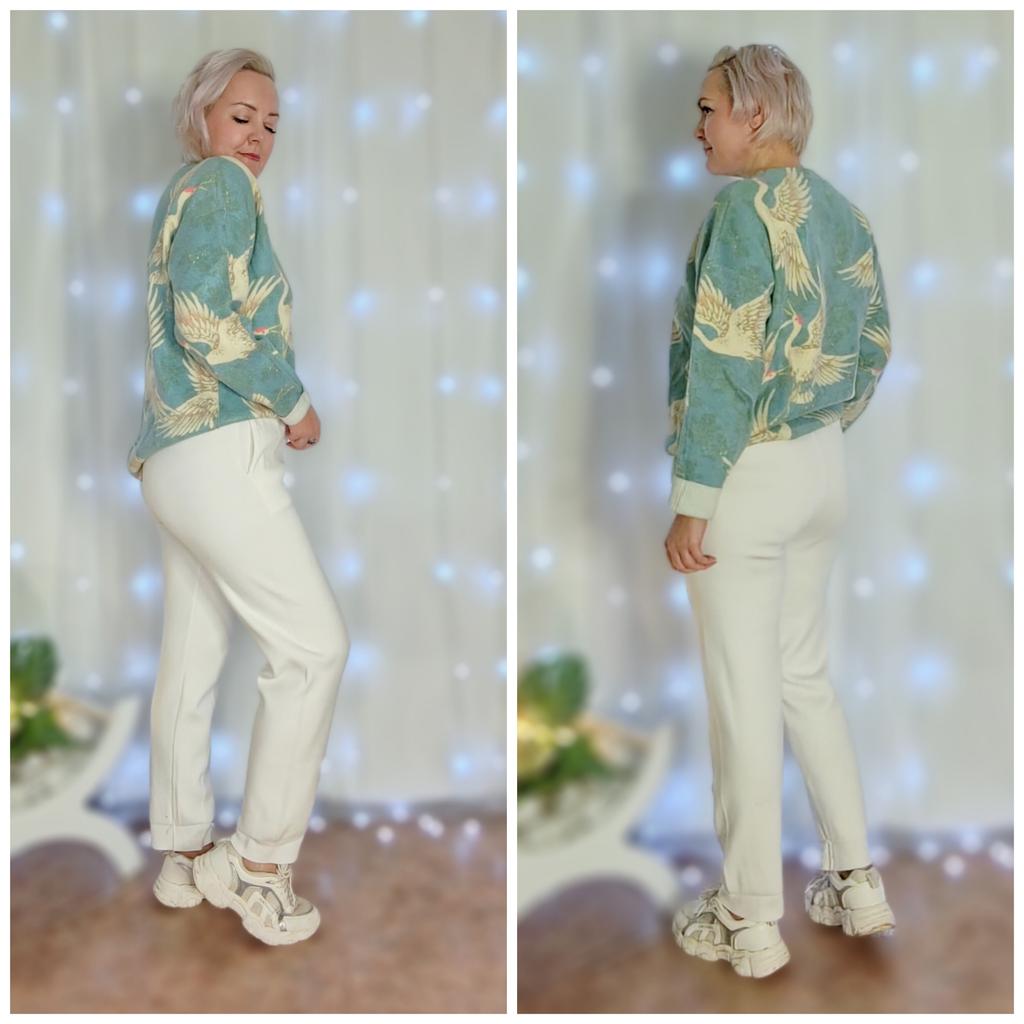 Классные белые, трикотажные штаны! Привет! Очень классные штаны, удобные, мягкие, лёгкие и тёплые! Давайте смотреть! ‼️Добавила разговорное видео посмотрите перед покупкой там больше деталей ‼️ Ткань: Трикотаж достаточно плотный, хорошо тянется в меру тяжёлый. Дизайн: На мой рост посадка ближе к средней, если Вы ниже меня ростом будет высокой. На талии резинка, комфортная и мягкая. По бокам карманы. Внизу штанины подвернуты я их отпустила и получила полную длину штанин. Размер: На мне единый размер. Мои параметры : рост 172 см 98/76/106 см Детали : Длина 99 см ОТ 64 до 102 см ОБ 94 до 132 см Внутренней шов 63 см Резюмирую: Очень удобные и мягкие штаны, мне особенно нравится их носить с удлинёнными джемперами. Очень советую. Я не прощаюсь, M_K #снежный_трикотаж