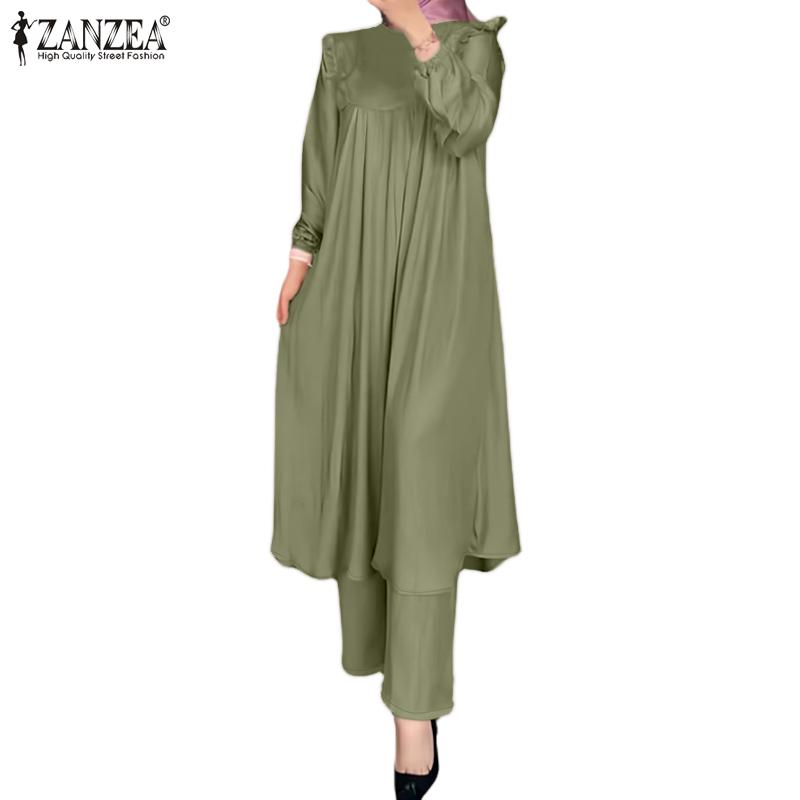 ZANZEA Женские длинные блузка и брюки в стиле ретро, повседневные комплекты из двух предметов