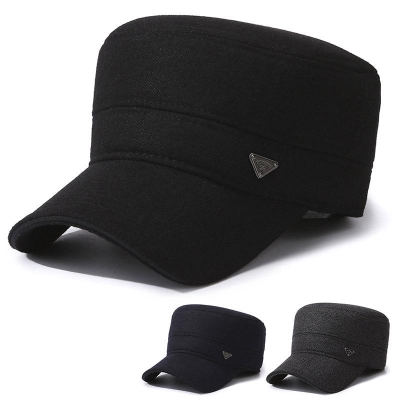 Зимняя мужская шапка из бархата, толстая, с защитой от ушей, шерстяная, плоская шапка для пожилых людей среднего возраста, теплая, капитанская кепка