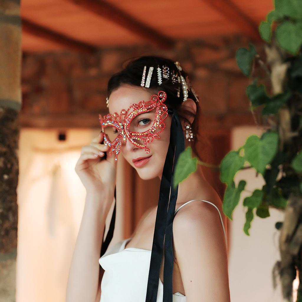 1. 【Детальный дизайн】: Эта изысканная маска для глаз украшена замысловатыми деталями, которые подчеркивают ее элегантность.. Уникальный дизайн свадебного головного убора добавляет нотку очарования и таинственности.. Он идеально подойдет для эффектного выхода на любой бал-маскарад, танцевальное мероприятие или тематическую костюмированную вечеринку».