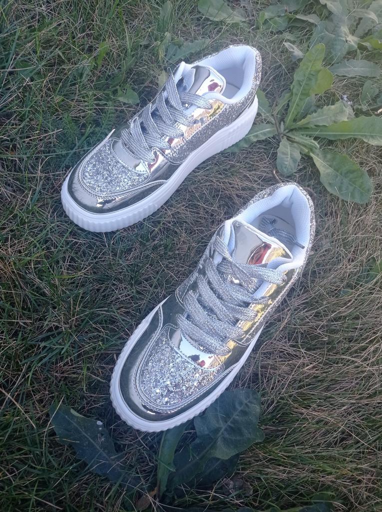 Блестящие гламурные кроссовки от MCTIN. Обувь мне безумно понравилась. Кроссовки Огонь.🔥 Отличное дополнение к образу и создания отличного настроения себе и окружающим. Шнурки такие же блестящие.На выбор есть серебристые и золотистые. Я выбрала серебристые.В реальности они красивее чем на фото. Размерный ряд: от 36 до 42 р. Был выбран размер 39. Стелька 25 см. От всей души рекомендую кроссовки и магазин разнообразной обуви. В магазине есть и зимняя обувь, которую я купила и буду ожидать с нетерпением.