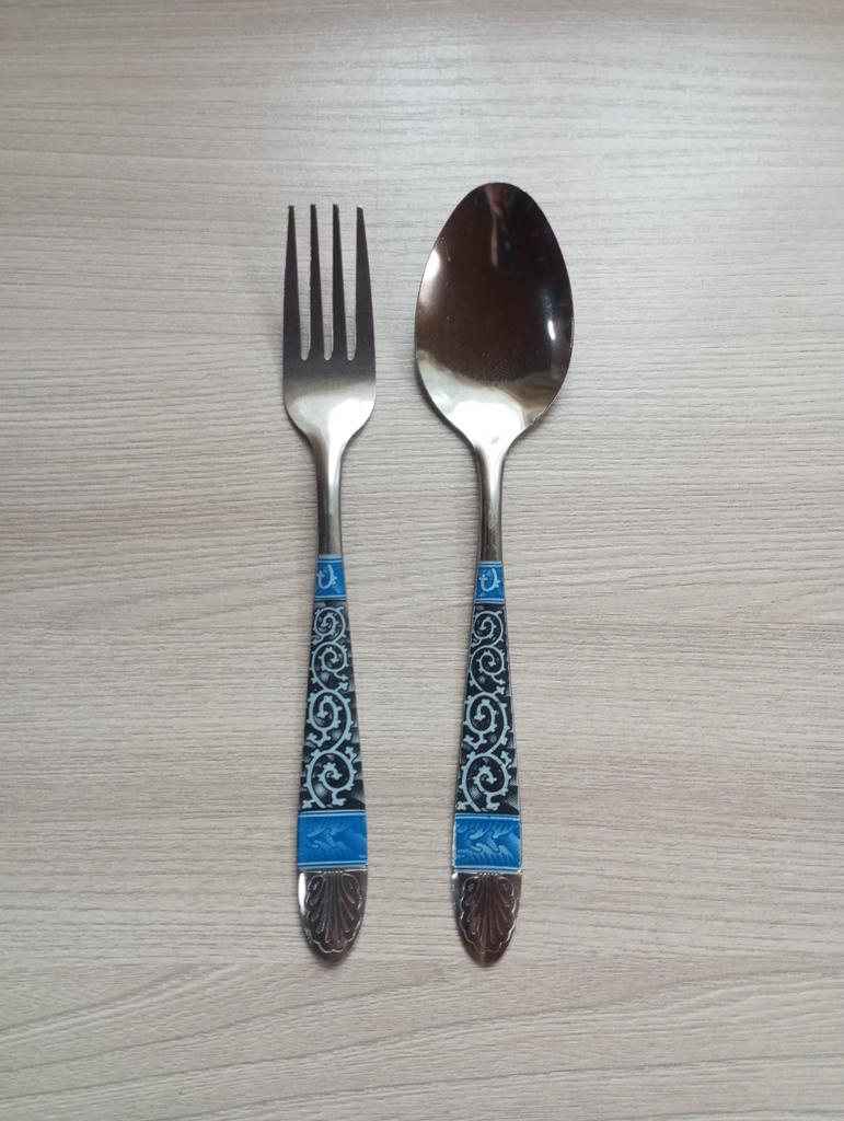 НАБОР СТОЛОВЫХ ПРИБОРОВ 🍴. 💥 В наборе вилка и ложка. Упакованы в прозрачный пакет. 💥 Изготовлены из нержавеющей стали, но металл очень тонкий. Согнуть его легко. В некоторых местах есть потёртости. 💥 На рукоятках нанесён рисунок. Конечно, со временем он будет стираться. Внешне приборы смотрятся неплохо. Качество соответствует цене. Желаю всем только удачных покупок 🛍️!💋💋💋