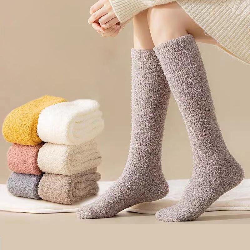 Зимние теплые длинные женские носки из кораллового флиса, толстые плюшевые домашние нескользящие носки-тапочки, повседневные простые чулки для сна