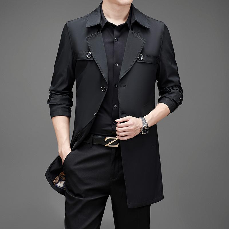 Мужское пальто Весна и осень новый повседневный пиджак с лацканами большой размер пожилой средней длины тренчкот деловая мужская одежда