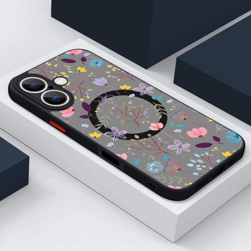 Для iPhone 16 Pro Max 15 14 Plus 13 12 Mini 11 7 8 для Magsafe противоударный цветочный узор мягкие края прозрачный акриловый жесткий чехол — купить товар онлайн с бесплатной доставкой по всему миру!