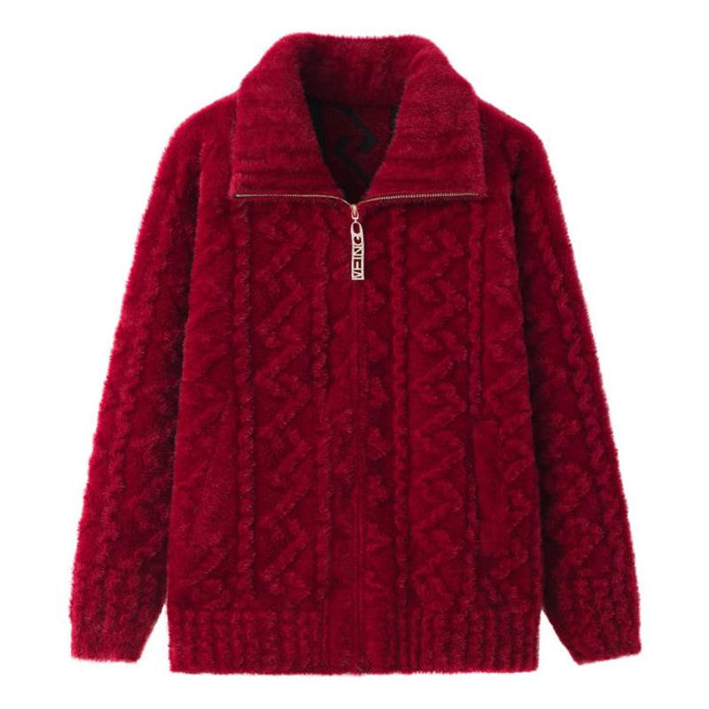 Вязаное пальто из искусственного норкового бархата для матери среднего возраста, большой размер, утолщенный женский свитер, повседневная куртка-кардиган на молнии для бабушки — купить товар онлайн с бесплатной доставкой по всему миру!
