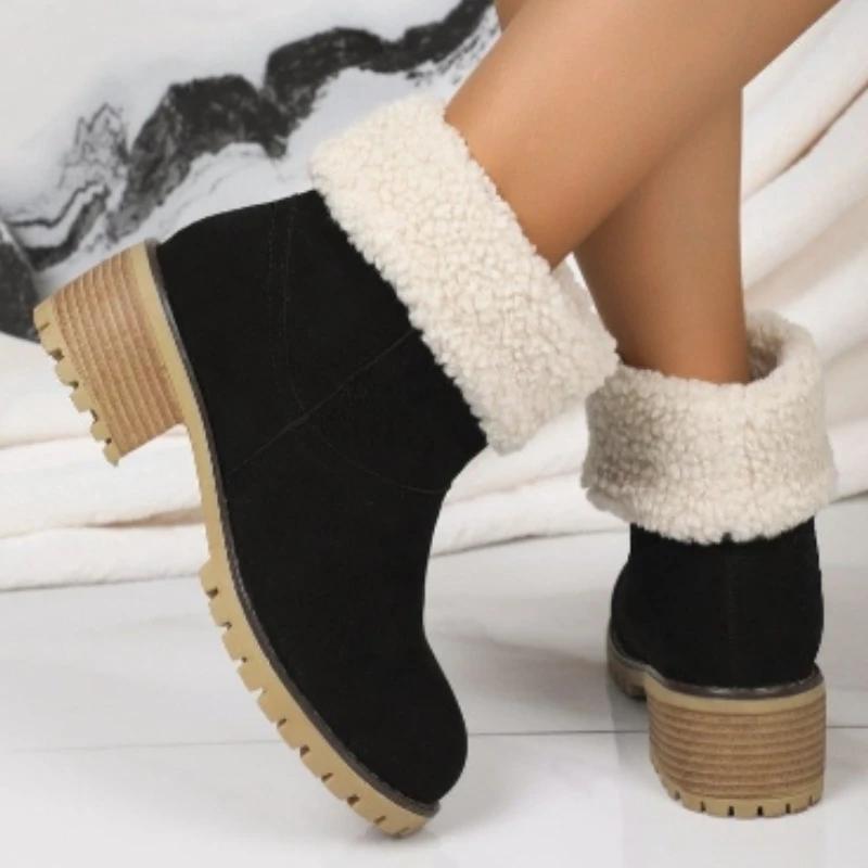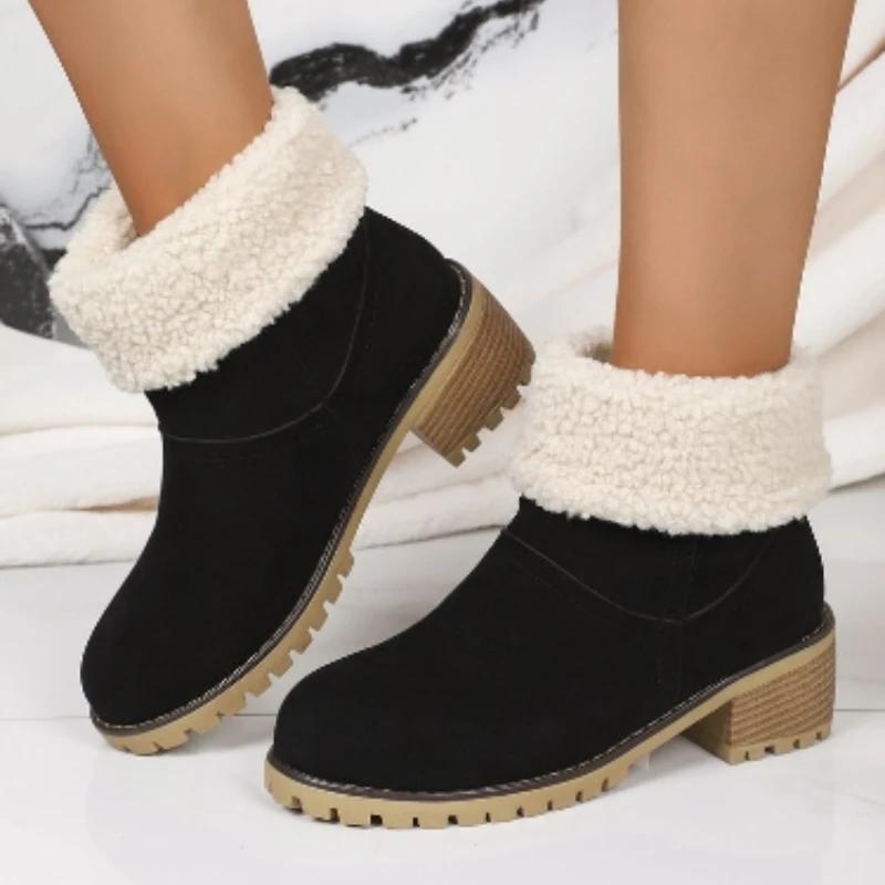Распродажа женской обуви. Женские сапоги без застежек. Зимние плюшевые флисовые сапоги для тепла. Однотонные короткие сапоги на толстом каблуке большого размера.