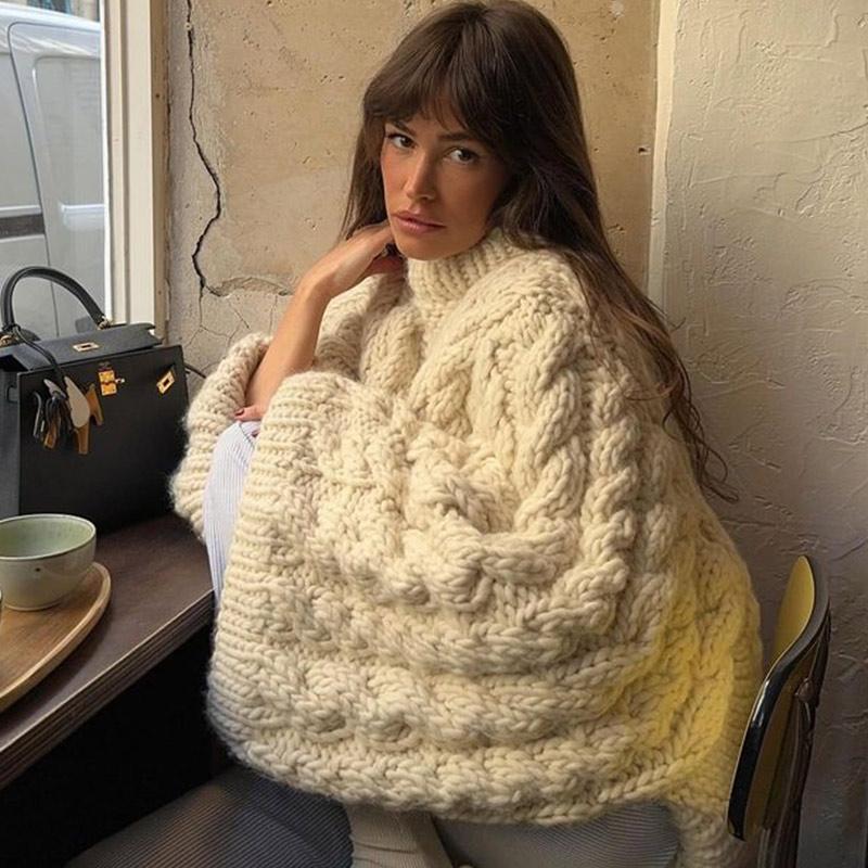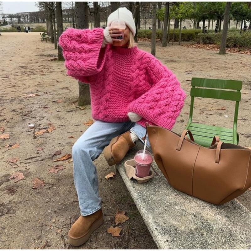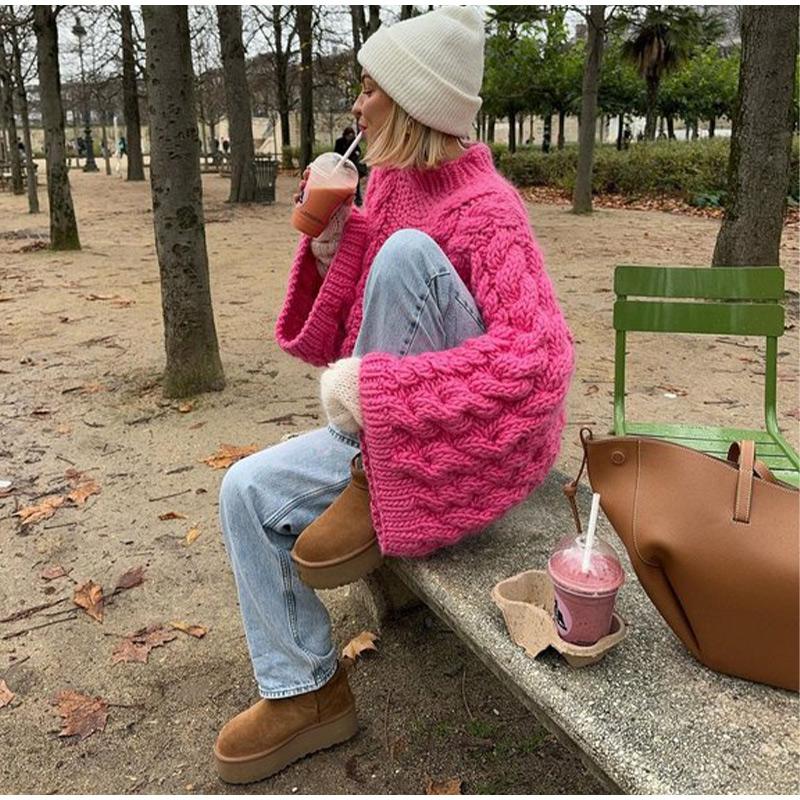 Модный вязаный свитер для женщин, повседневный свободный пуловер с круглым вырезом и длинным рукавом, утолщенный теплый женский трикотаж, осень-зима, женский однотонный универсальный джемпер