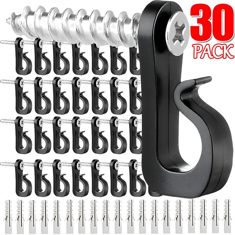 30/1 шт Q-образных крючков для гирлянд, подвесных многоцелевых потолочных крючков для шкафов с растениями и винтами, для домашнего использования на открытом воздухе