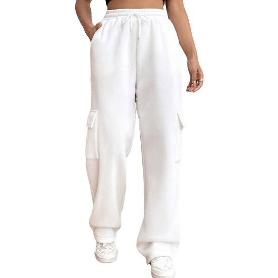 Представляем наши стильные брюки-карго для женщин, изготовленные из высококачественного полиэстера, приятного для кожи, мягкого и комфортного на весь день.. Эти однотонные брюки имеют повседневный и свободный крой и идеально подходят как для повседневной носки, так и для поездок на работу..