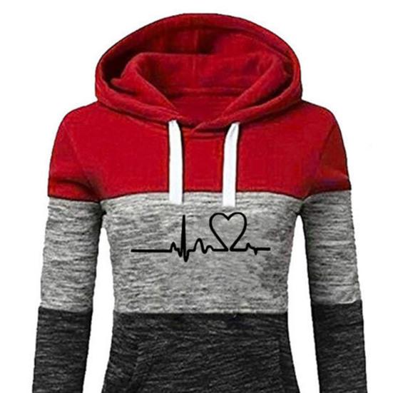 Стильный дизайн принта «Сердце»: Выделитесь с помощью топа с длинными рукавами и принтом в виде сердец в сочетании с спортивными штанами с капюшоном в цветных блоках, создав модный и стильный ансамбль, который идеально подойдет для разных случаев.