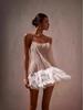 Элегантное и универсальное платье из полиэстера обеспечивает повседневный и свободный крой, обеспечивая комфорт в течение всего дня.. Мягкая и легкая ткань невероятно приятна на ощупь, что делает ее незаменимой вещью в вашем гардеробе.. Это платье с сексуальным топом-трубой, украшенным бретелями, кружевом и бахромой, излучает очарование и стиль..