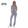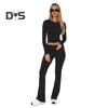 Шикарный стиль: Ощутите простоту с этим однотонным костюмом, включающим топ с круглым вырезом, длинными рукавами и узкие расклешенные брюки.. Повседневный стиль для ежедневных поездок на работу излучает элегантность и очарование, подходя широкому кругу пользователей.