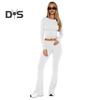 Украсьте свой повседневный гардероб этим универсальным женским повседневным костюмом-двойкой.. Этот стильный и удобный комплект включает в себя топ с круглым вырезом, длинными рукавами и узкие расклешенные брюки.. Однотонный дизайн создает простой, но в то же время шикарный образ, идеально подходящий для ежедневных поездок на работу или отдыха на природе.