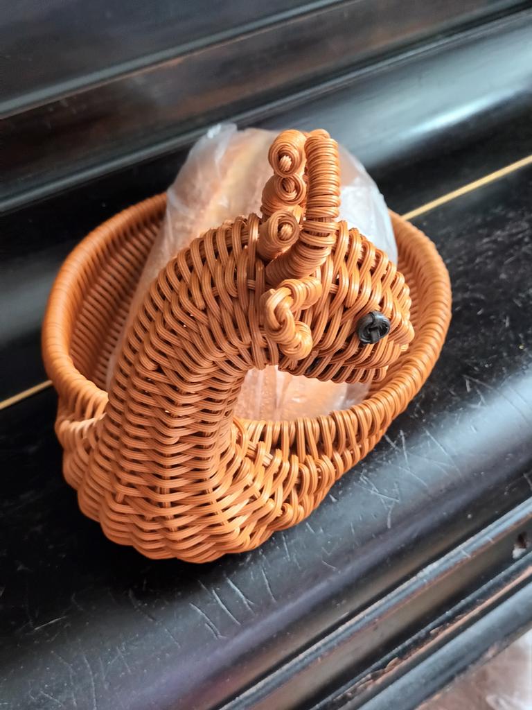 Заказ пришел,,очень понравился дочери,маленькое пожелание,чтобы плетёный товар всё-таки упаковывали в коробку,а не в пакет,дорога долгая,поэтому пришел немного помятый,но все равно спасибо ,товар хороший,красиво стоит на столе с любым фруктом.благодарю и рекомендую продавца и товар,удачи вам