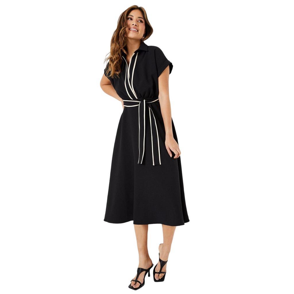 Принципы Женское/женское платье миди с контрастными деталями и завязкой на талии