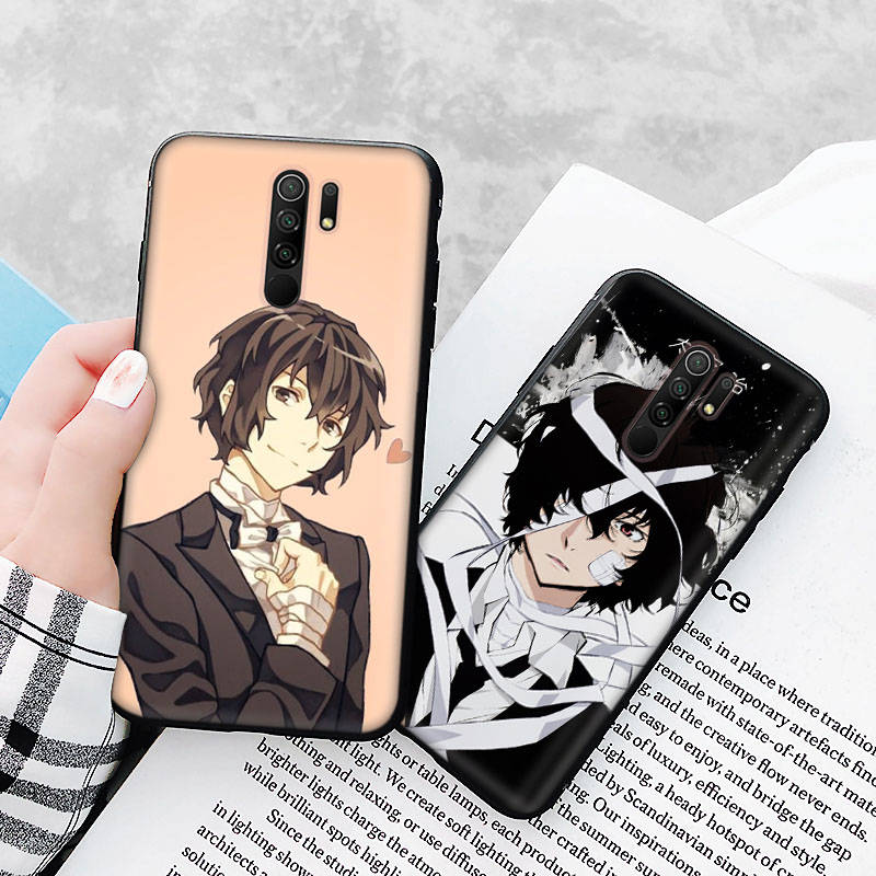 Черный чехол для Xiaomi Redmi 13C Note 9 iPhone XR 7 8 14 15 11 12 13 X XS Pro Max Samsung A25 S23 S24 FE Ultra Plus Дадзай Осаму