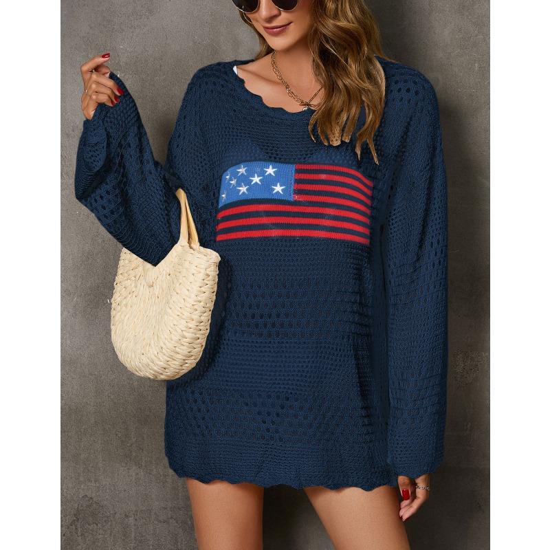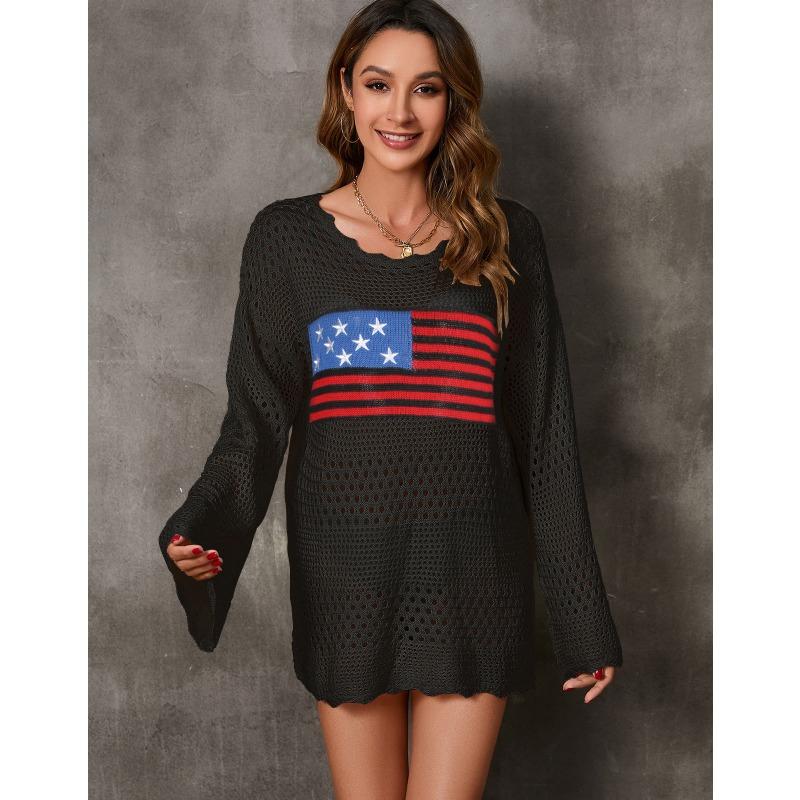 Женский осенне-зимний повседневный свитер с круглым вырезом и принтом