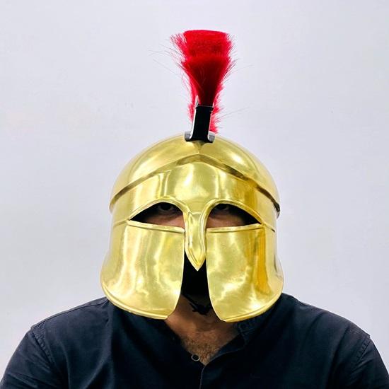Элегантный красный плюмаж: Добавляя немного величия, шлем украшен ярким красным плюмажем, который подчеркивает его историческую привлекательность.. Перо надежно закреплено и дополняет конструкцию шлема, добавляя ему визуального эффекта и исторической достоверности.. Яркий цвет делает его центром внимания, идеально подходящим для выставок или театральных представлений.