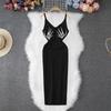 Летние женские сексуальные бретельки с принтом панк вязаный свитер мини короткие облегающие облегающие платья-пуловеры