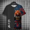 Мужская футболка с принтом «Bushido Animal Cat Samurai», летняя футболка с коротким рукавом, мужские ретро-топы, повседневная мужская свободная футболка