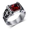 Христианский готический красный драгоценный камень крест кольцо старинный католический молитвенный амулет ювелирные изделия для мужчин