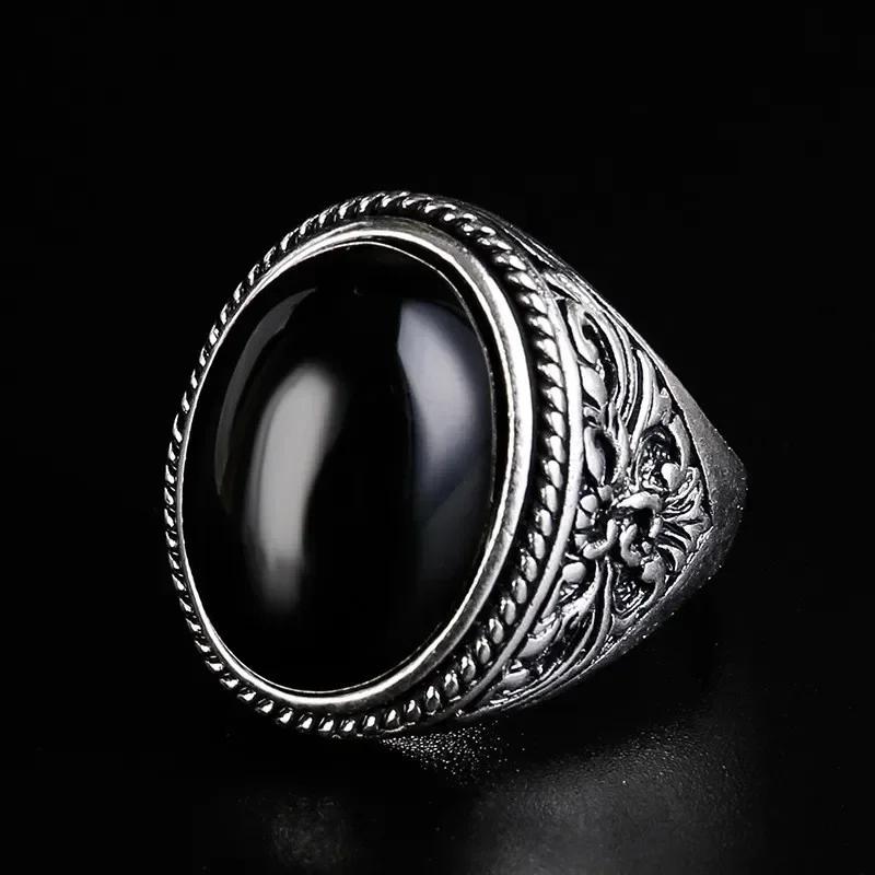 Европейское и американское классическое винтажное овальное кольцо из черного агата, мужское художественное резное простое мужское изделие ручной работы — купить товар онлайн с бесплатной доставкой до всему миру!