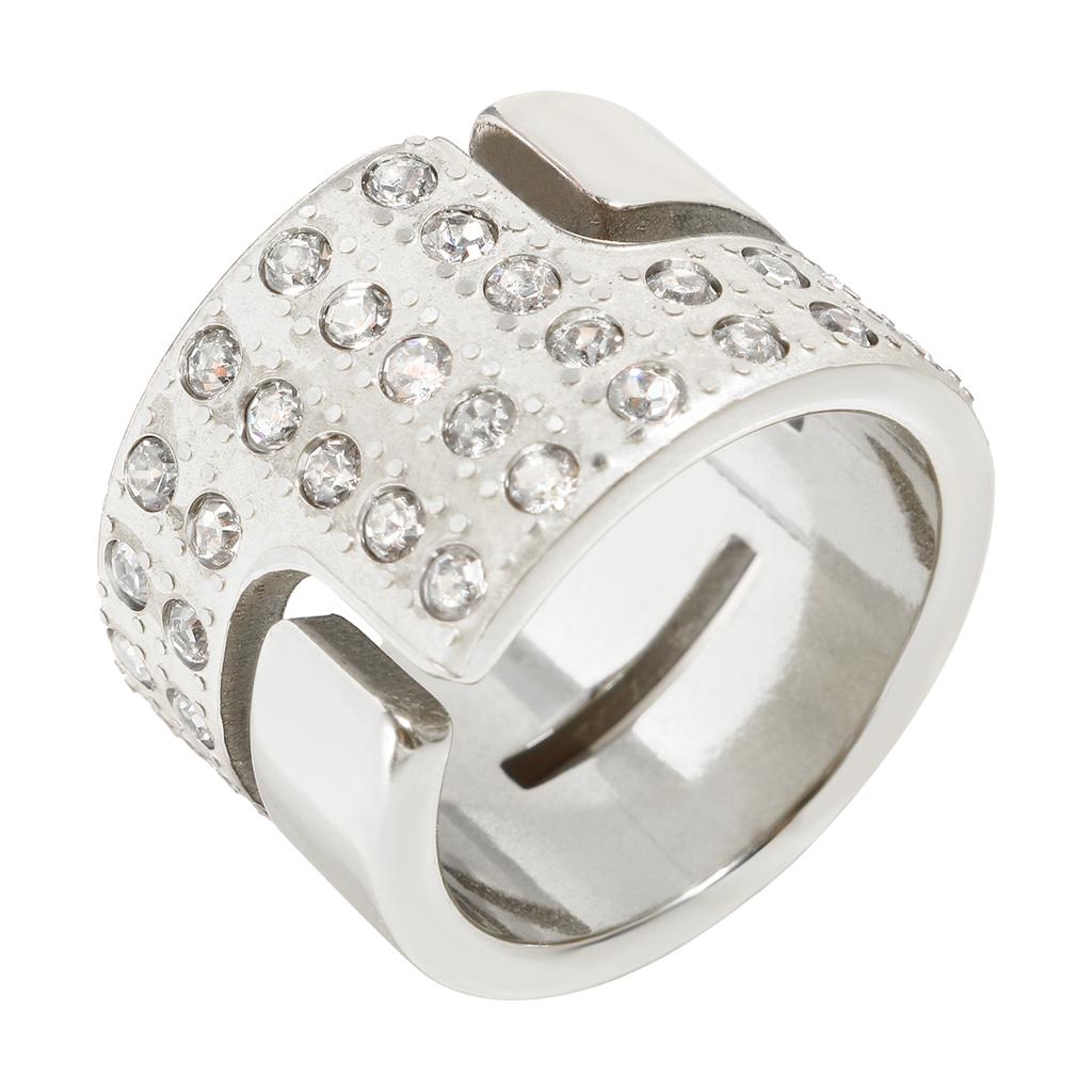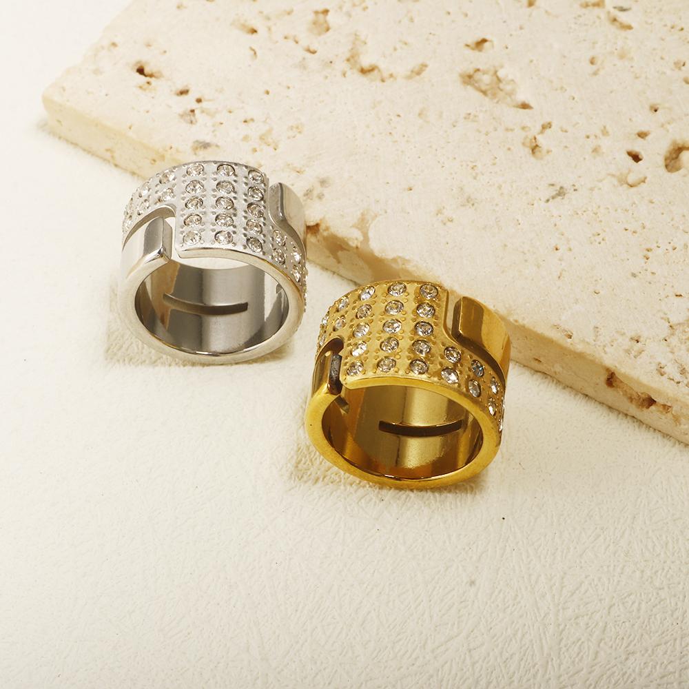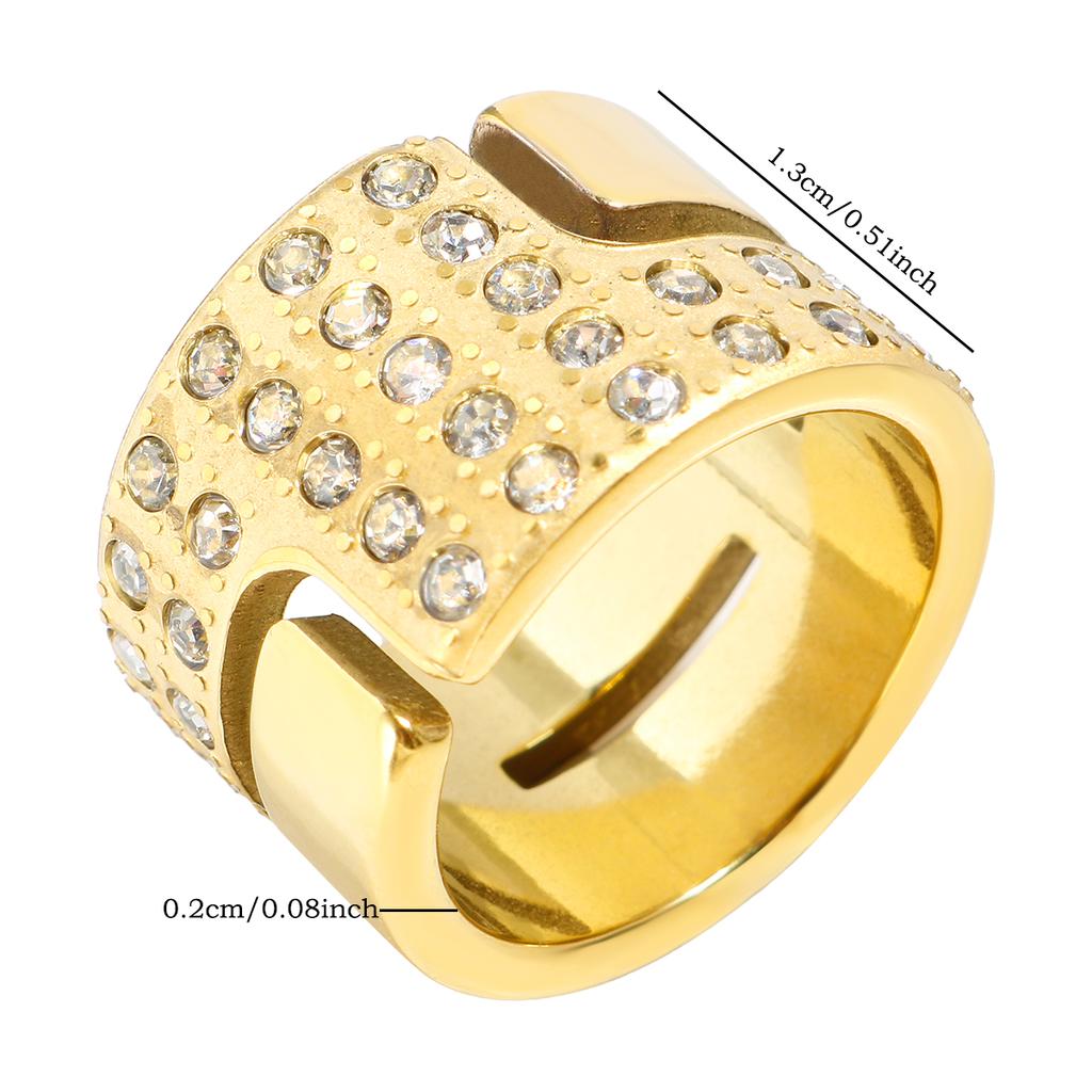 JOVO LOVE Нерегулярная кривая Широкое кольцо Роскошное Цирконий инкрустированное Нержавеющая сталь Золотого цвета Кольцо на палец Модные женские ювелирные изделия Подарки