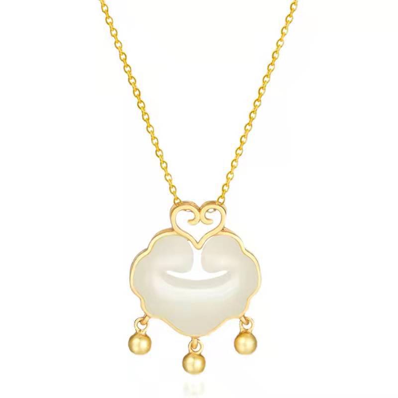 Подвеска с замком-сейфом из 18-каратного золота Au750 цвета с инкрустацией изумрудом Ruyi Fashion Clavicle Chain — купить товар онлайн с бесплатной доставкой по всему миру!
