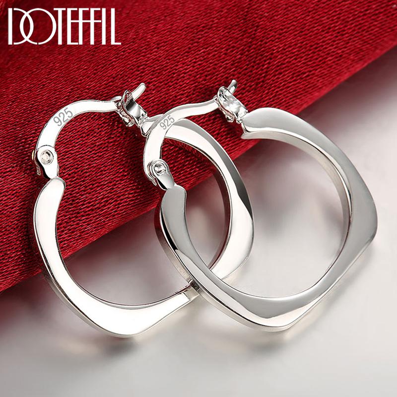 Серьги-кольца из стерлингового серебра 925 пробы, плоские, квадратные, круглые, 20 мм, для женщин, свадеб, помолвок, модных вечеринок, ювелирных изделий с шармом