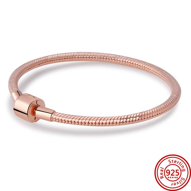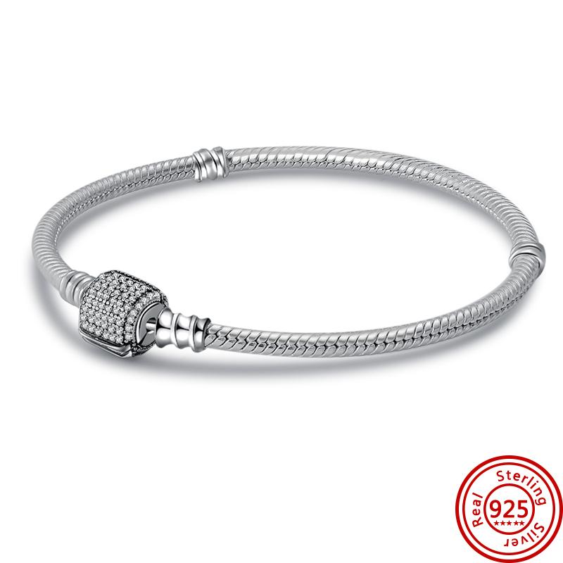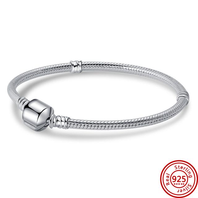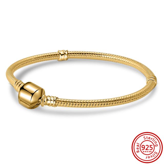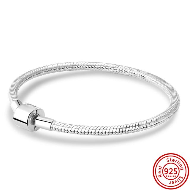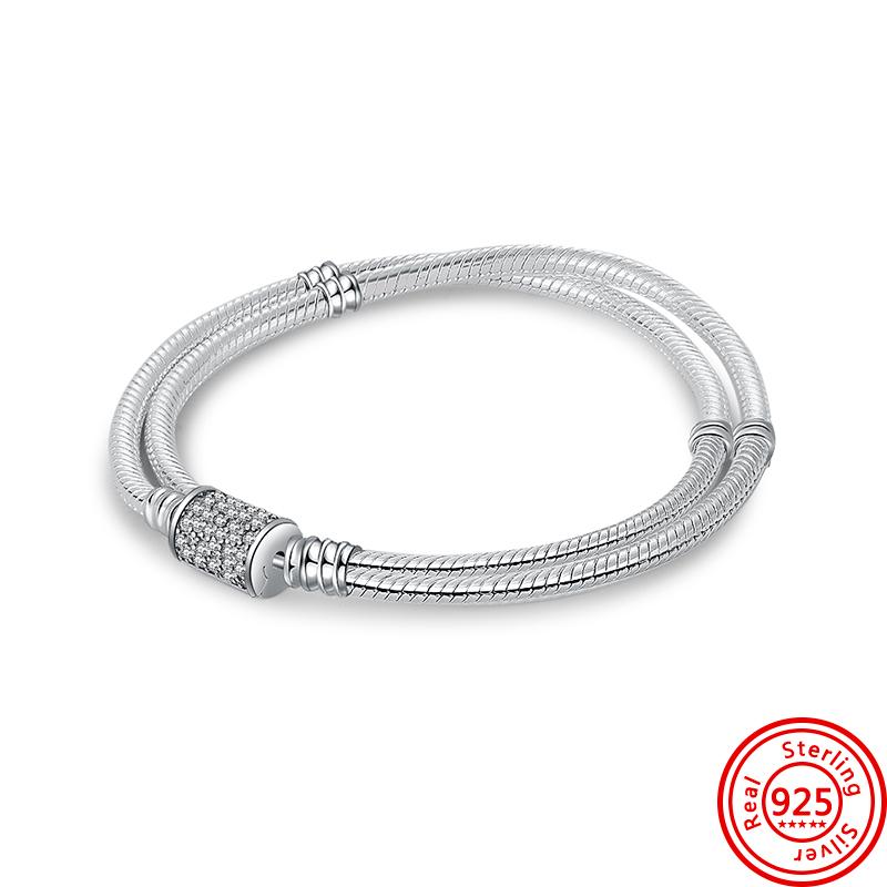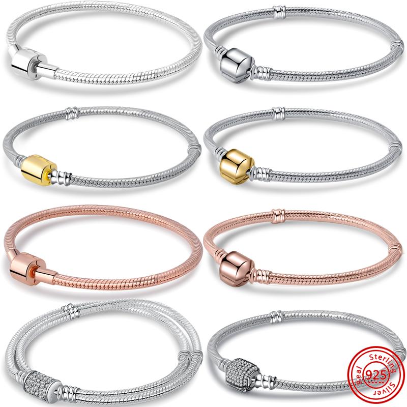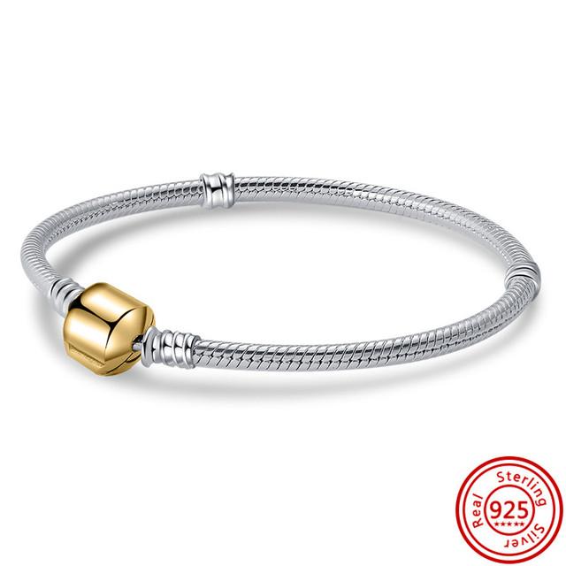 Серебряный двухцветный 925 пробы с застежкой-бочкой в виде змеи, подвески в виде цепочки, изящный браслет, подходит для оригинальных фирменных бусин, женские роскошные ювелирные изделия своими руками