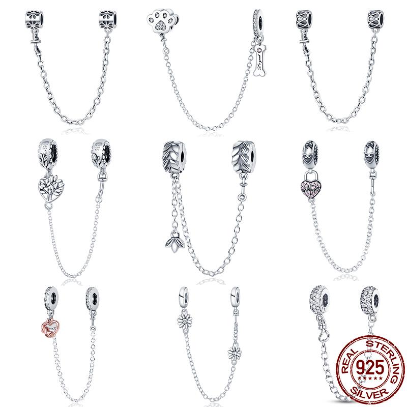Новые 100% стерлингового серебра 925 пробы цветок безопасная цепочка подвески бусина подходит для браслета кулон женщина мода изящные ювелирные изделия