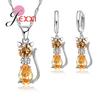 925 стерлингового серебра милый кот кристалл ожерелье серьги ювелирные наборы для женщин девушки вечеринка лучший друг подарок модные украшения