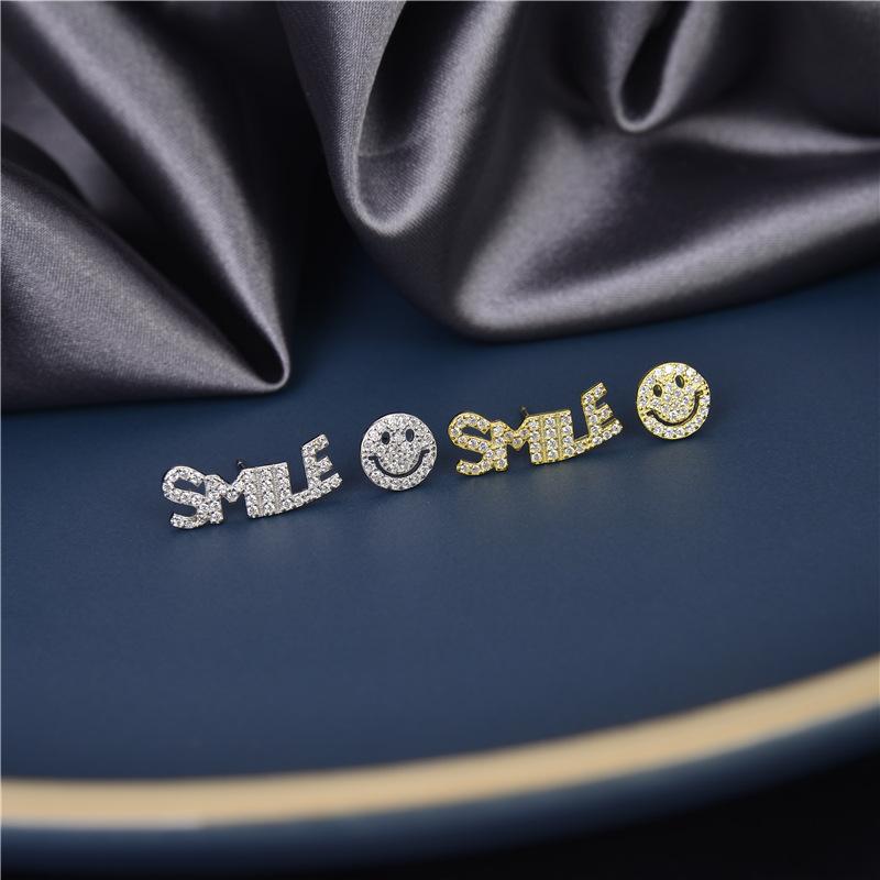 Серьги-смайлик с инкрустацией из стерлингового серебра S925, женские асимметричные серьги-гвоздики со смайликом, изящные ювелирные изделия для подарка на вечеринку
