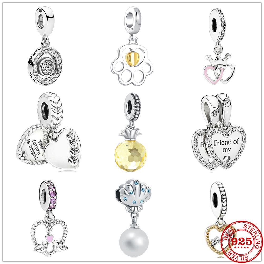 Подходящий оригинальный браслет с подвесками из серебра 925 пробы с бусинами в виде ананаса и жемчугом в виде сороки, кошачий коготь, женские украшения