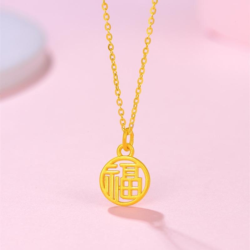 Женское ожерелье с подвеской Guochao из чистого золота 999 пробы, брендовое ожерелье Fuzi из 3D твердого золота